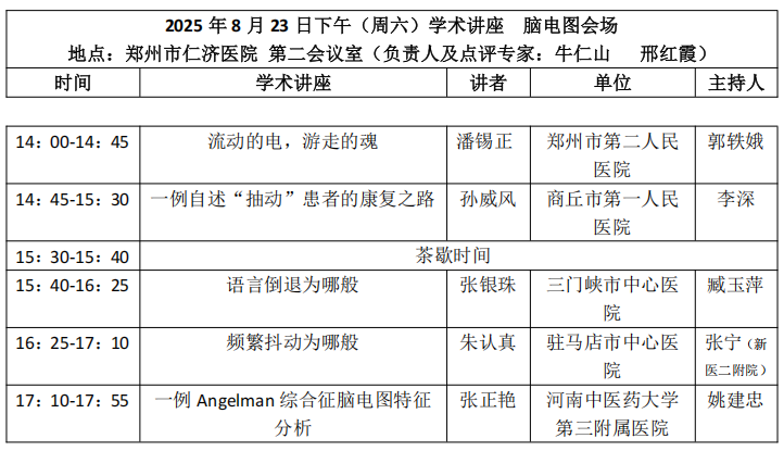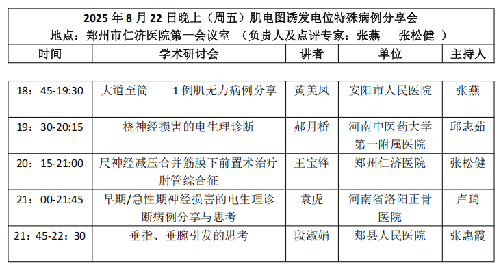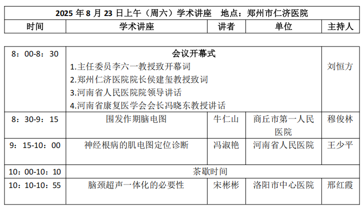 由河南省康复医学会主办,郑州仁济医院、河南省人民医院承办 的“2025 年河南省康复医学会临床神经电生理分会学 术年会暨临床神经电生理学临床应用论坛”将在郑州仁济医院盛大召开。